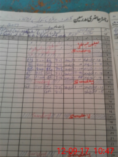 | CNIC | Full Name | Designation | R/C | Absence During Last Calender Month |