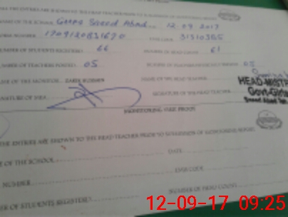 | Name: So**** Sh**** Designation: (School Headmaster's/Headmistress's) PST Phone/Cell Number: 03**** |