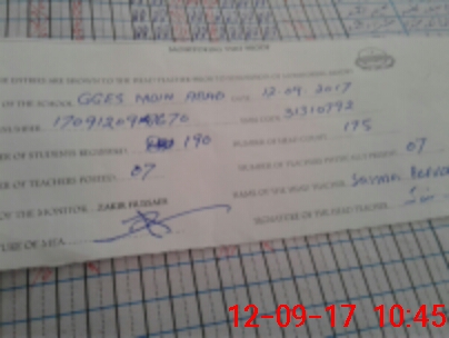 | Name: Me**** Ka**** Designation: (School Headmaster's/Headmistress's) SST SCIENCE Phone/Cell Number: 03**** |