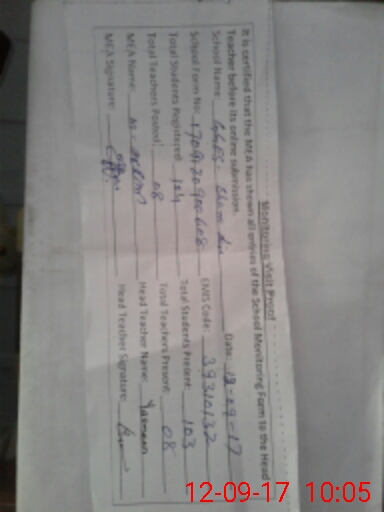 | Attendance Register | Head Teacher | MEA with School | Visit Proof |