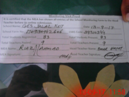 | EMIS Code: 39310344 | Name of School: GES JALAL KOT | |||