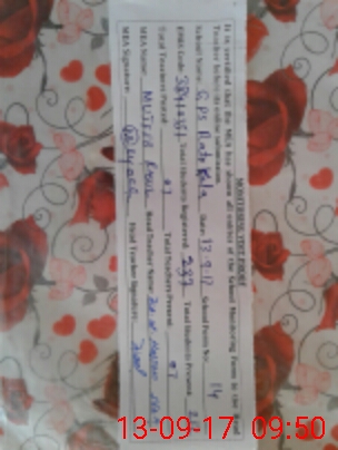 | Monitoring Date: 13-09-2017 | Start Time: 13-09-2017 08:40 AM | End Time: 13-09-2017 09:54 AM | Name of MEA: MU**** MU**** RA**** | |