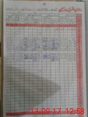 | CNIC | Full Name | Designation | R/C | Absence During Last Calender Month |