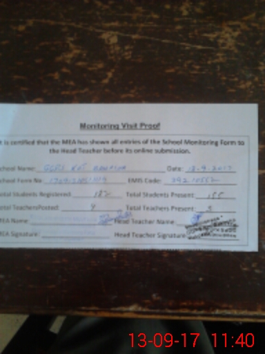 | EMIS Code: 39210552 | Name of School: GGPS KOT BAKHSHA | |||