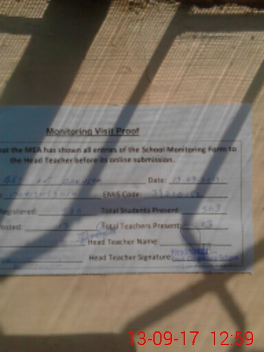 | Attendance Register | Head Teacher | MEA with School | Visit Proof |