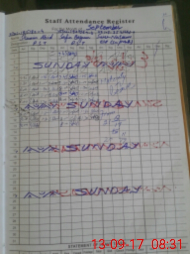| CNIC | Full Name | Designation | R/C | Absence During Last Calender Month |