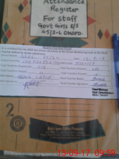 | District: OKARA | Tehsil: OKARA | Markaz: KARMAN WALA - FEMALE | Level: Middle | |