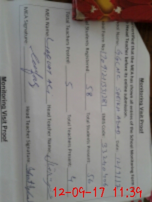 | Attendance Register | Head Teacher | MEA with School | Visit Proof |