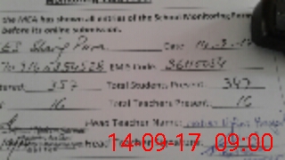 | Monitoring Date: 14-09-2017 | Start Time: 14-09-2017 08:14 AM | End Time: 14-09-2017 09:00 AM | Name of MEA: AH**** NA**** SA**** | |