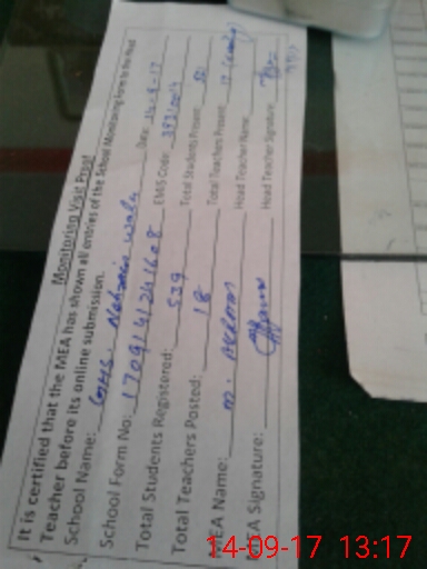 | Certified that this School was Inspected by the Undersigned MEA/DMO Today and the Information Stated Above is as Per Record. | |||||