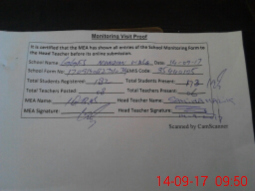 | Certified that this School was Inspected by the Undersigned MEA/DMO Today and the Information Stated Above is as Per Record. | |||||