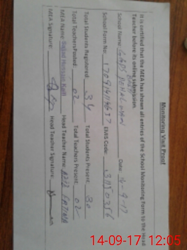 | Certified that this School was Inspected by the Undersigned MEA/DMO Today and the Information Stated Above is as Per Record. | |||||