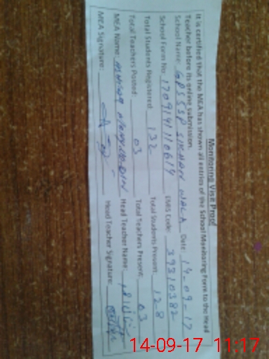 | Attendance Register | Head Teacher | MEA with School | Visit Proof |