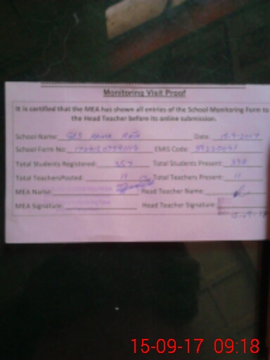 | Certified that this School was Inspected by the Undersigned MEA/DMO Today and the Information Stated Above is as Per Record. | |||||