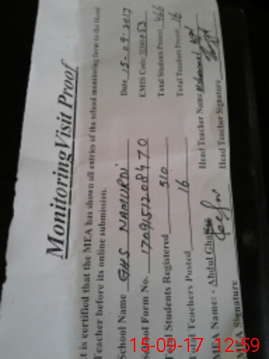 | Name: Gh**** Al**** Designation: (School Headmaster's/Headmistress's) Head Master Phone/Cell Number: 03**** |