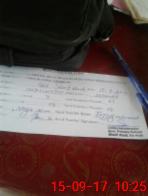 | School Visited by School Health & Nutrition Supervisor (No. of Visits) | Name1: | Mushtaq Ahmad | Name2: | O | |
