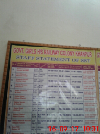 | EMIS Code: 31310818 | Name of School: GGHS RAILWAY COLONY KHANPUR | |||