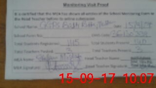| Certified that this School was Inspected by the Undersigned MEA/DMO Today and the Information Stated Above is as Per Record. | |||||