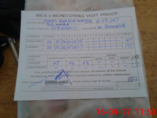 | EMIS Code: 36430399 | Name of School: GMPS RAM PUR MAGHA, TULAMBA | |||