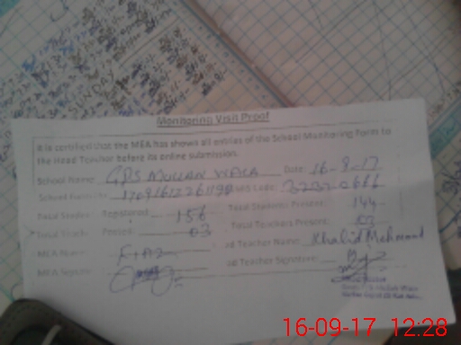 | Attendance Register | Head Teacher | MEA with School | Visit Proof |