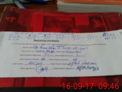 | Attendance Register | Head Teacher | MEA with School | Visit Proof |