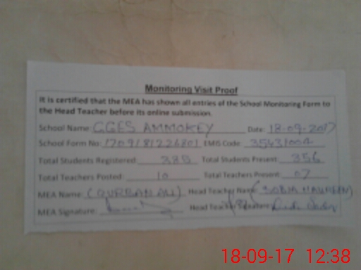 | Certified that this School was Inspected by the Undersigned MEA/DMO Today and the Information Stated Above is as Per Record. | |||||