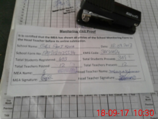 | Attendance Register | Head Teacher | MEA with School | Visit Proof |