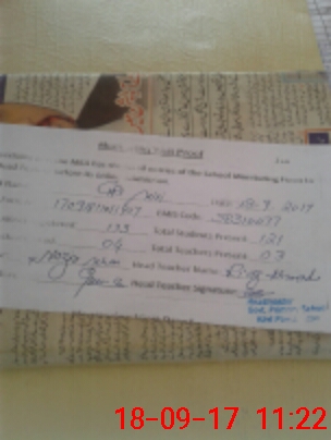 | Attendance Register | Head Teacher | MEA with School | Visit Proof |