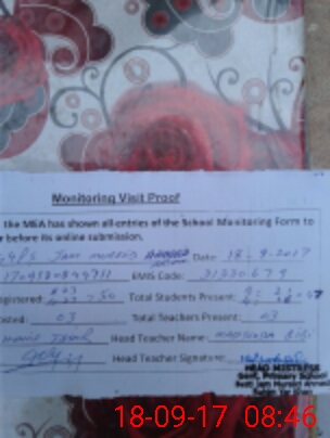| Attendance Register | Head Teacher | MEA with School | Visit Proof |