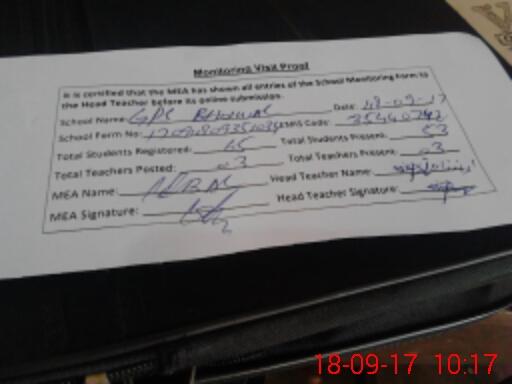 | Attendance Register | Head Teacher | MEA with School | Visit Proof |