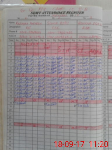 | CNIC | Full Name | Designation | R/C | Absence During Last Calender Month |