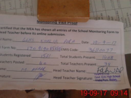 | Certified that this School was Inspected by the Undersigned MEA/DMO Today and the Information Stated Above is as Per Record. | |||||