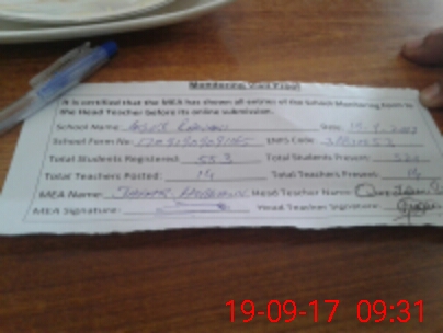 | Attendance Register | Head Teacher | MEA with School | Visit Proof |