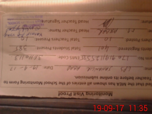 | Attendance Register | Head Teacher | MEA with School | Visit Proof |