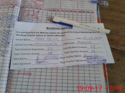 | Attendance Register | Head Teacher | MEA with School | Visit Proof |