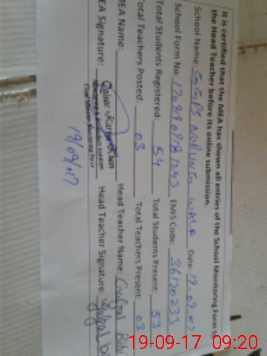 | Certified that this School was Inspected by the Undersigned MEA/DMO Today and the Information Stated Above is as Per Record. | |||||