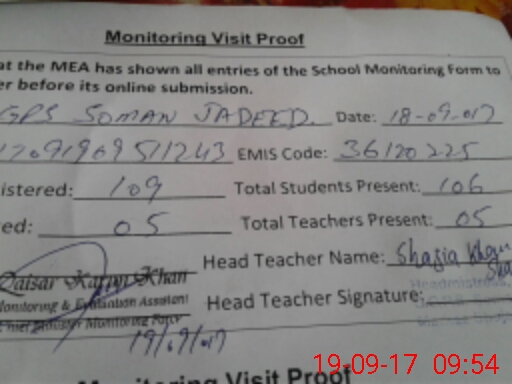 | EMIS Code: 36120225 | Name of School: GGPS SOMAN JADEED SHUJABAD | |||