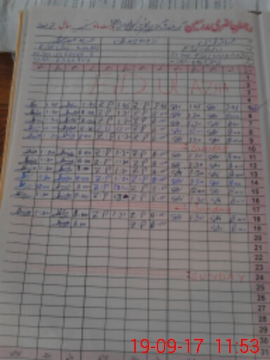 | CNIC | Full Name | Designation | R/C | Absence During Last Calender Month |