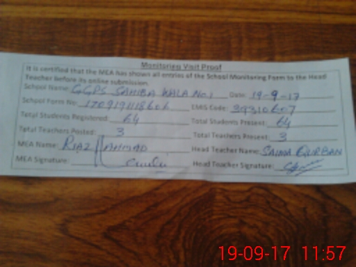 | EMIS Code: 39310607 | Name of School: GGPS SAHIBA WALA NO. 1 | |||