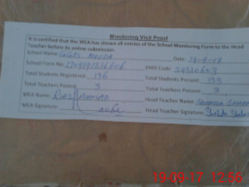 | Attendance Register | Head Teacher | MEA with School | Visit Proof |