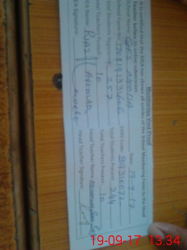 | Attendance Register | Head Teacher | MEA with School | Visit Proof |