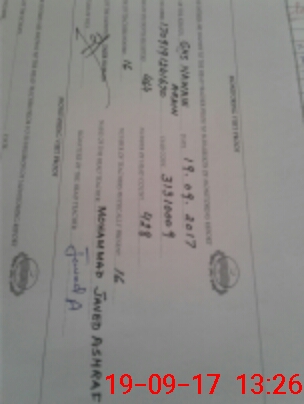 | Monitoring Date: 19-09-2017 | Start Time: 19-09-2017 12:41 PM | End Time: 19-09-2017 01:28 PM | Name of MEA: Za**** Hu**** | |