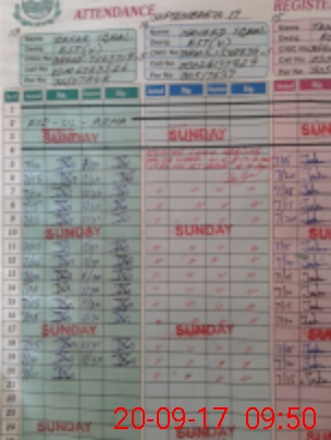 | CNIC | Full Name | Designation | R/C | Absence During Last Calender Month |