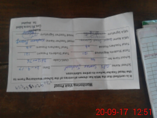 | Attendance Register | Head Teacher | MEA with School | Visit Proof |