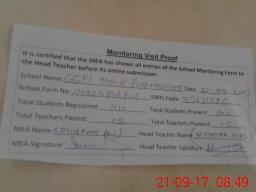 | EMIS Code: 35431296 | Name of School: GGPS NOORPURA MACHIKE | |||