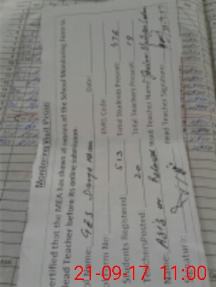 | Attendance Register | Head Teacher | MEA with School | Visit Proof |