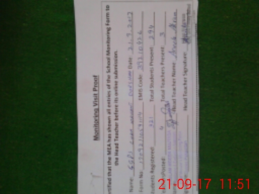 | Certified that this School was Inspected by the Undersigned MEA/DMO Today and the Information Stated Above is as Per Record. | |||||