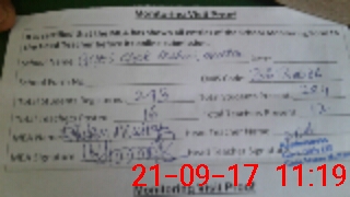 | Monitoring Date: 21-09-2017 | Start Time: 21-09-2017 10:47 AM | End Time: 21-09-2017 11:19 AM | Name of MEA: GH**** MU**** | |