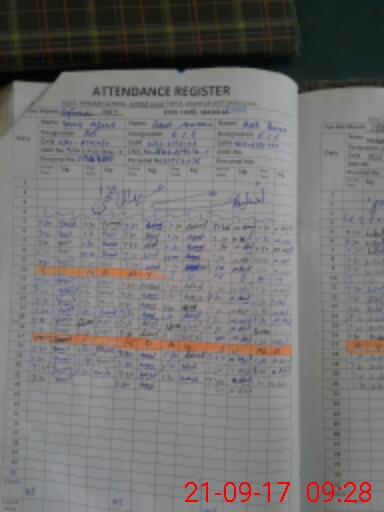 | CNIC | Full Name | Designation | R/C | Absence During Last Calender Month |