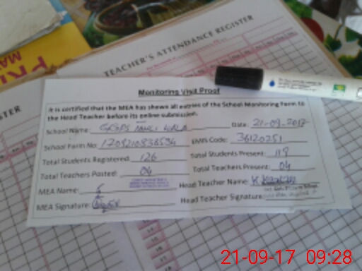 | Attendance Register | Head Teacher | MEA with School | Visit Proof |